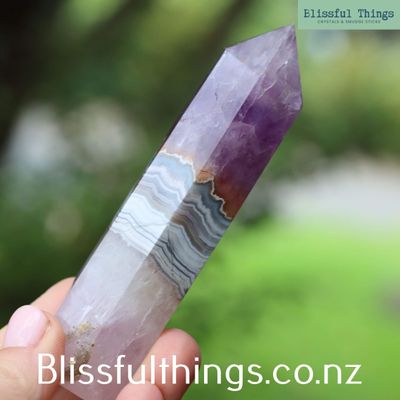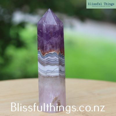 Mexican Agate with Amethyst is a beautiful natural combination where banded agate forms alongside purple amethyst crystals within the same stone. Scientifically, Agate is a form of microcrystalline quartz that forms in layers within volcanic cavities, while Amethyst develops when iron-rich quartz crystals grow in these same spaces. This striking pairing is commonly found in volcanic regions of Mexico, where mineral-rich fluids create these unique formations. In metaphysical practice, Mexican Agate with Amethyst is believed to combine the stabilising, grounding energy of agate with the calming and spiritually uplifting qualities of amethyst, making it a popular crystal for balance, meditation, and inner clarity.