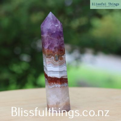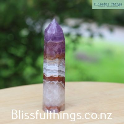 Mexican Agate with Amethyst Tower