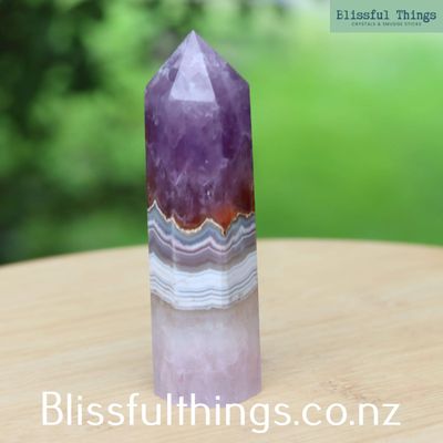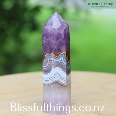 Mexican Agate with Amethyst Tower