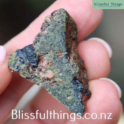 Scientifically, Moss Agate is a form of chalcedony containing mineral inclusions that create its characteristic moss-like patterns. Bloodstone is a dark green variety of chalcedony traditionally marked with small red jasper spots caused by iron minerals. Epidote is a calcium aluminium iron silicate mineral, and in this piece it naturally formed alongside black tourmaline crystals, creating an interesting cross-section showing both minerals together.