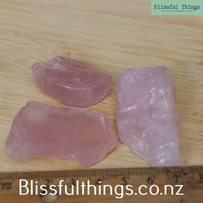 Bundle contains three tumbled Rose Quartz pieces. Please refer to the photo for size.