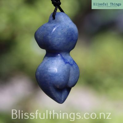 Blue Quartz Goddess Pendant with Complementary Cord.