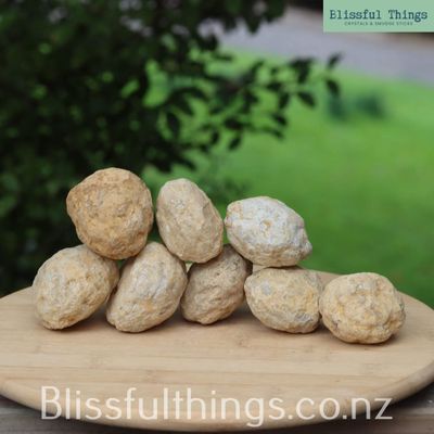 Each geode contains beautiful Quartz crystals. Whether your geode is solid or hollow, you’ll discover lovely, sparkly crystals inside – a true geological treasure!