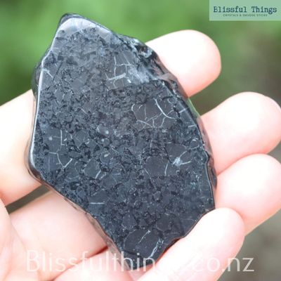 Shungite is a unique, carbon-rich mineral primarily found in Russia but can come from other parts of the world. Scientifically, it is notable for its high carbon content, which consists mainly of carbon molecules in the form of fullerenes, a structure of carbon atoms arranged in a hollow sphere. Metaphysically, Shungite is considered a powerful stone in many spiritual traditions, believed to provide grounding and protection against electromagnetic radiation, negative energy, and environmental stress. While scientific evidence supporting these claims is limited, Shungite remains a popular tool for those seeking balance and harmony in their surroundings. Please note that Shungite is a soft mineral. Like all gemstones and crystals, they are made up of various minerals and elements, formed over 1000s of years. In some cases, crystals like Shungite have other minerals within them. Because of the softness of this mineral and the variations of what types of minerals and other heavy trace elements may or may not be present, we do not recommend Shungite for water purification.
