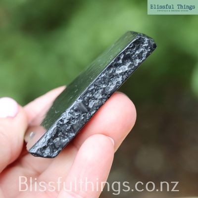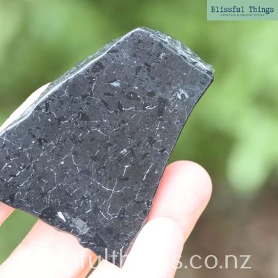 Shungite is a unique, carbon-rich mineral primarily found in Russia but can come from other parts of the world. Scientifically, it is notable for its high carbon content, which consists mainly of carbon molecules in the form of fullerenes, a structure of carbon atoms arranged in a hollow sphere. Metaphysically, Shungite is considered a powerful stone in many spiritual traditions, believed to provide grounding and protection against electromagnetic radiation, negative energy, and environmental stress. While scientific evidence supporting these claims is limited, Shungite remains a popular tool for those seeking balance and harmony in their surroundings. Please note that Shungite is a soft mineral. Like all gemstones and crystals, they are made up of various minerals and elements, formed over 1000s of years. In some cases, crystals like Shungite have other minerals within them. Because of the softness of this mineral and the variations of what types of minerals and other heavy trace elements may or may not be present, we do not recommend Shungite for water purification.