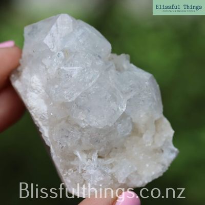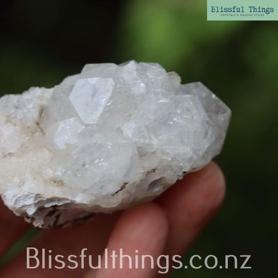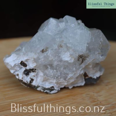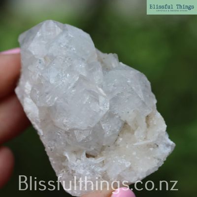 Apophyllite is a silicate mineral, typically found in volcanic rocks, and is part of the phyllosilicate family. Its chemical composition is most often potassium calcium fluorosilicate hydroxide (KCa₄Si₈O₂₀(F,OH)·8H₂O), and it commonly forms in transparent to translucent pyramidal or tabular crystals, often with a high luster and natural facets. It has a relatively low hardness of around 4.5 to 5 on the Mohs scale and is prized for its ability to form large, well-structured crystals, frequently in association with zeolites. Metaphysically, Apophyllite is known as a stone of spiritual connection and insight. It is believed to carry a high vibration that supports clarity, truth, and inner vision, making it a favorite for meditation and energy healing. Many practitioners use Apophyllite to open the third eye and crown chakras, inviting higher guidance and calming anxiety with its uplifting and purifying energy.