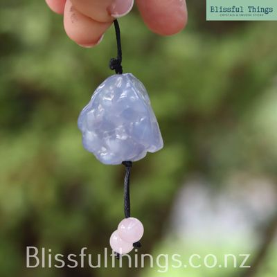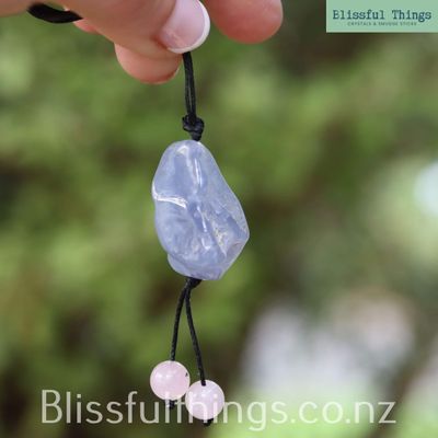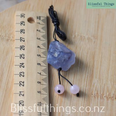 Blue Lace Agate Pendant with Rose Quartz on adjustable String.