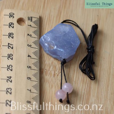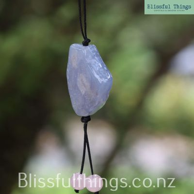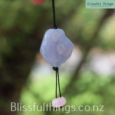 Blue Lace Agate Pendant with Rose Quartz on adjustable String.