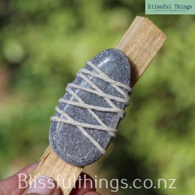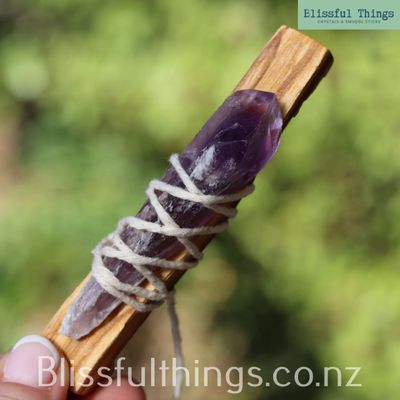 Light the tip of a Palo Santo stick and allow it to burn for around 30 seconds before gently blowing out the flame. Let the smoke drift through your space, around yourself, or over your crystals to cleanse and reset the energy. Choose the crystal that best matches your intention—Amethyst for clarity, Aroha Stone for heart-centered energy, or Satin Spar for calm and balance.
