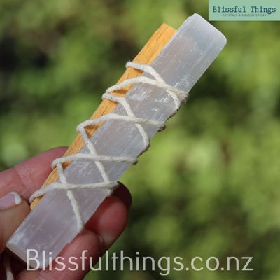 Each Palo Santo stick is carefully bound with soft white cotton string and paired with its own crystal, creating a set designed to cleanse, uplift, and bring a sense of balance to your space and energy.