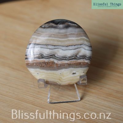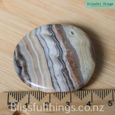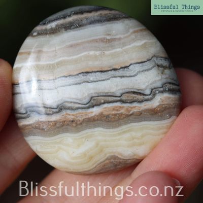 Zebra Calcite is a striking variety of calcite (CaCO₃) characterized by its banded patterns of black, white, grey, and sometimes yellow or beige, which resemble the stripes of a zebra. These contrasting layers are formed by natural inclusions and mineral impurities during the crystal’s growth, giving each piece a unique appearance. With a Mohs hardness of 3, it is relatively soft and typically forms in sedimentary environments. Metaphysically, Zebra Calcite is seen as a stone of transformation, balance, and emotional clarity. It is believed to help dissolve fear, self-doubt, and outdated mental patterns, making space for optimism, courage, and inner peace. Resonating especially with the root and solar plexus chakras, it offers grounding energy while gently encouraging personal empowerment and forward movement.