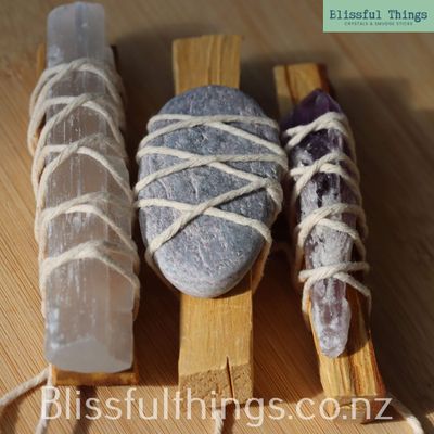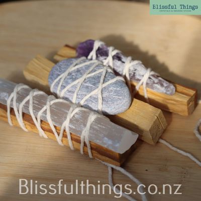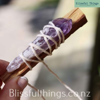 SKU: BtA583 TAGS: Palo Santo, Smudge Stick, selenite, Satin Spar, Amethyst, Aroha Stone