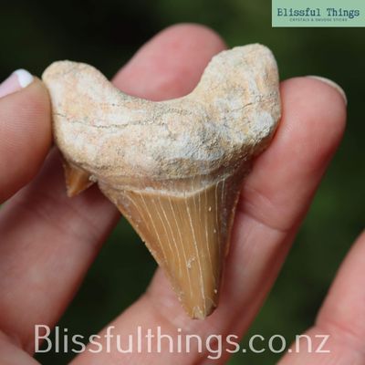 Fossilized shark teeth are ancient remnants of some of the most powerful creatures to have ever roamed the earth. These teeth can be found in various sizes and shapes, often millions of years old, dating back to periods like the Cretaceous or Miocene epochs. As sharks' teeth are continually shed throughout their lives, they were abundant in the oceans, leaving behind a fossilized record for us to study. Scientifically, they are composed of hydroxyapatite, a mineral form of calcium phosphate, which gives them their unique durability and preservation. Metaphysically, fossilized shark teeth are believed to carry powerful protective energies and help with strength, resilience, and personal growth. They are also thought to provide a connection to ancient wisdom, grounding, and the ability to overcome obstacles, making them popular in crystal healing and as decorative specimens.